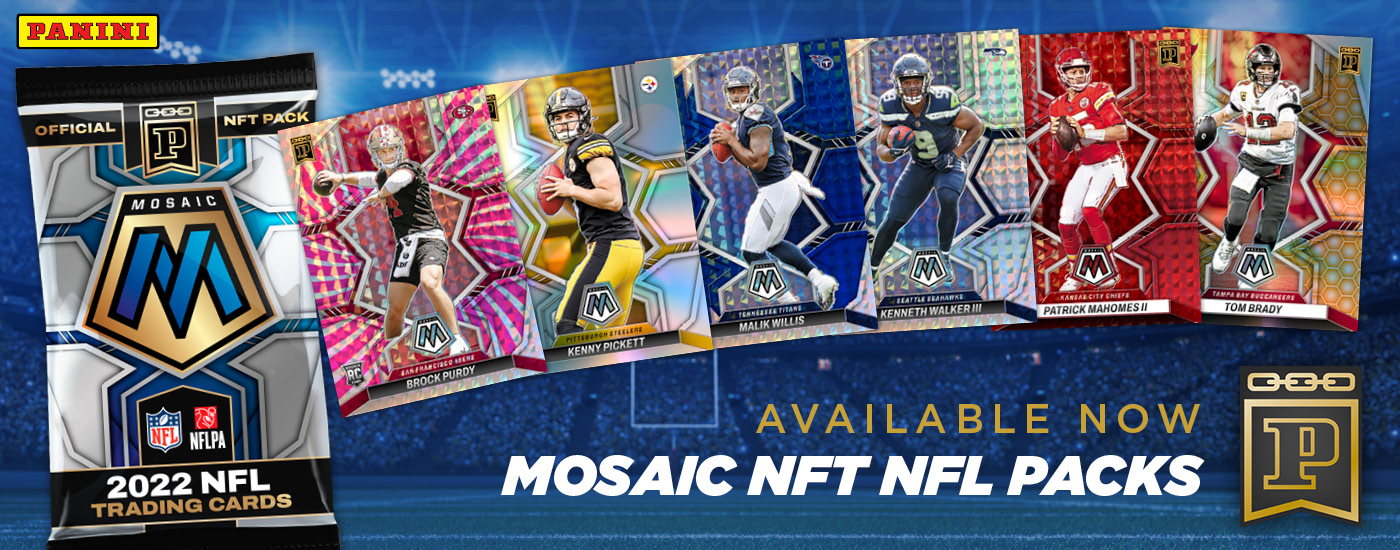 benefits. There is no better way to enjoy Superbowl weekend, than with Panini NFT's! You can open packs, like these NFL Mosaic Packs, that cost just $10, and have a guaranteed card to /199, and you can even find 1/1 cards! Find your