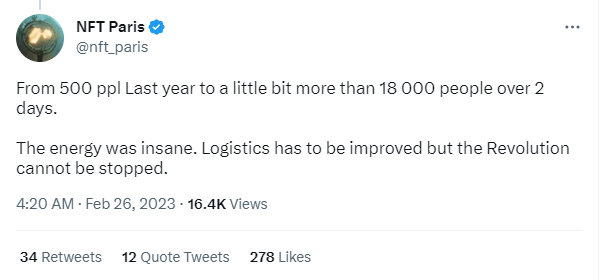 we bring you the clarity into the markets that you deserve. In other news, the NFT conference circuit is in full swing again, kicking off last week with the return of NFT Paris on February 24 - 25. If you’ve heard that the Web3 industry does its building during a bear market, reports that over