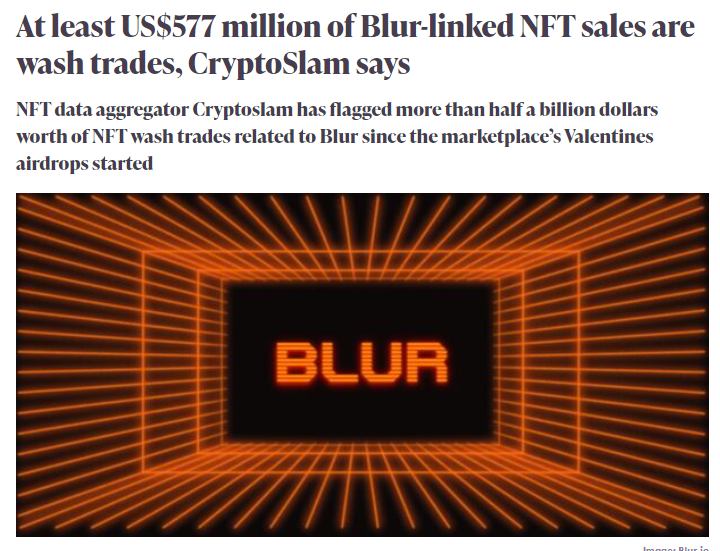 underneath. Let’s just say, it was pretty dirty. While it seemed that NFTs were climbing their way to a new ceiling, the washed-away wash trades reveal that the total USD value of sales on ETH in February is only marginally up from the late 2022 bear market. So what’s really going on out there in NFTs, and why are some traders wash trading to such an extreme? These savvy traders (we call them “degens”) have been putting their skills to work farming points leading up to the next $BLUR token