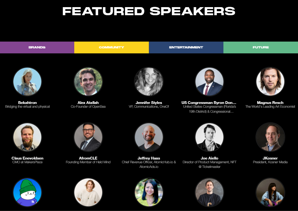 will certainly be worth their time if they want to hear from the NFT space’s thought leaders, including Eddie Satterly from OneOf, Sebastian Oddo from Mastercard, Jenn LaRocco from SMX Media, Yat Siu from Animoca, and even CryptoSlam and Forkast News’ first appearance (coming with a big announcement). Don’t bother unpacking your bag after