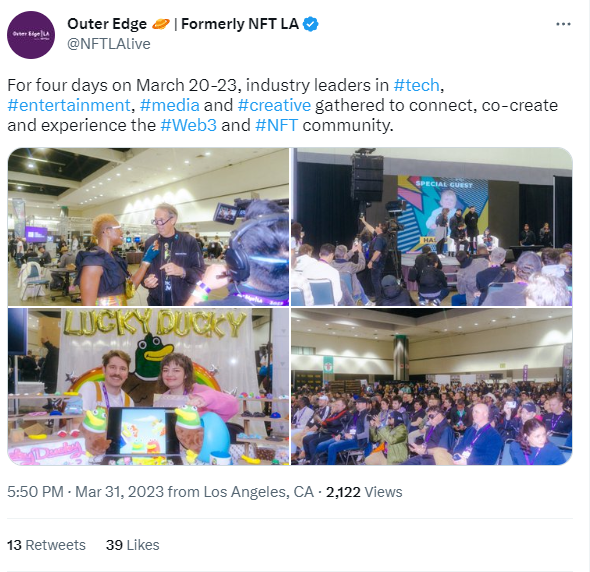 turnout is lacking, and even last month’s NFT LA (now named Outer Edge), though well attended, didn’t seem the same as in 2022. Some