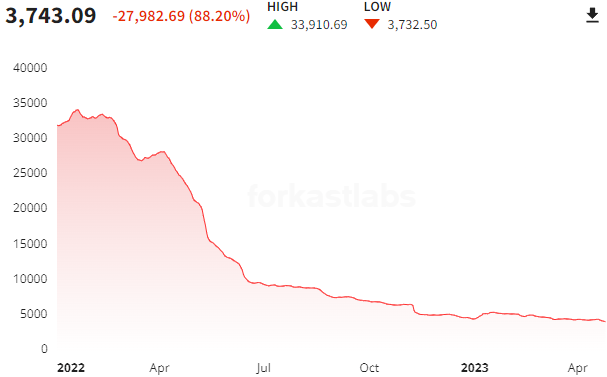 the masses first came into NFTs and inflated the bubble, is pretty enlightening. Since the Forkast 500 Index began tracking the market on Jan 1 2022, the Forkast 500 is down over 88%. That means if you had invested