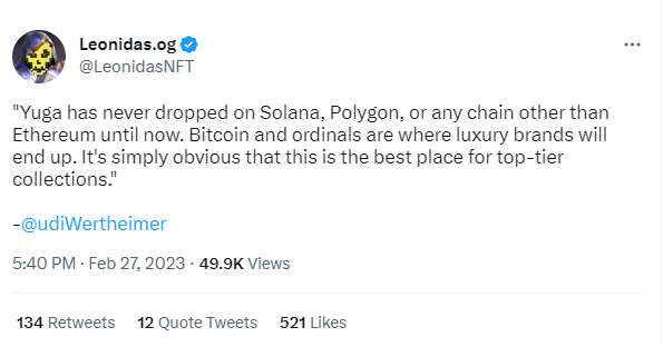 Bored Ape Yacht Club) is releasing a new NFT collection on the Bitcoin blockchain. Some are already speculating on the future value of Yuga’s new NFTs. My thoughts at the very least are, they’re worth a few