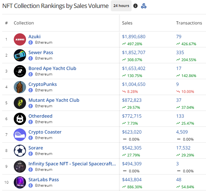 One might expect the NFT markets to react strongly, so let’s take a look and see how the past few days played