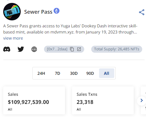 mint of Sewer Pass, which has traded over $109m, and their TwelveFold mint on Bitcoin for $16.5m, we’ve now had over $125m trading hands, which I suspect is leaving traders low on liquidity. There’s likely to be another major NFT drop coming this year from Yuga, and if so, I expect it to be the final liquidity-sucking event of the year. They say once is an accident, twice is a coincidence, and the 3rd time is a pattern. My