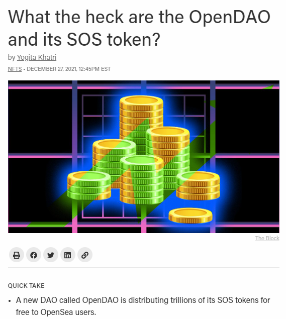 December 2021 when NFT traders received an airdrop of tokens called $SOS. (This was an unannounced reward for traders similar to Blur.io’s $BLUR token drops, which infused millions of dollars into traders' hands). The $SOS stimulus fueled the next NFT