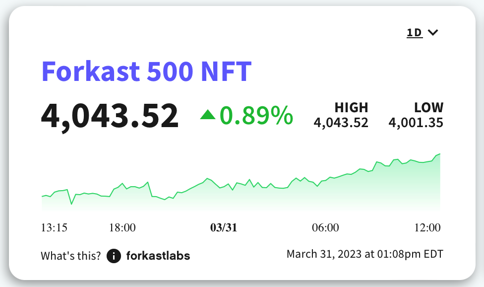 mint my free ones. Just goes to show what an empty canvas these blockchains are, and just how the right combination of artist and product market fit can paint a masterpiece at any unexpected time. Cheers! The Forkast NFT 500 is the definitive measure of the performance of the global NFT market across all blockchains. Panini Prizm NFL NFT packs are available now! The