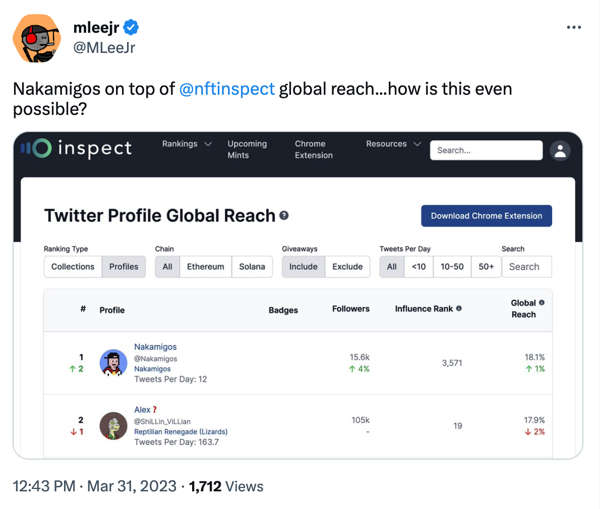 it. I didn’t expect to see this, as I personally had pfp fatigue and the bear market was punishing pfp “blue chip” projects like Moonbirds, and Azuki. I actually had 6 free mints for Nakamigos from the EOS passes I had prior to the snapshot deadline, but “faded” them, which is the web3 way of saying I didn’t think they would be as successful as they were, and was personally too busy to
