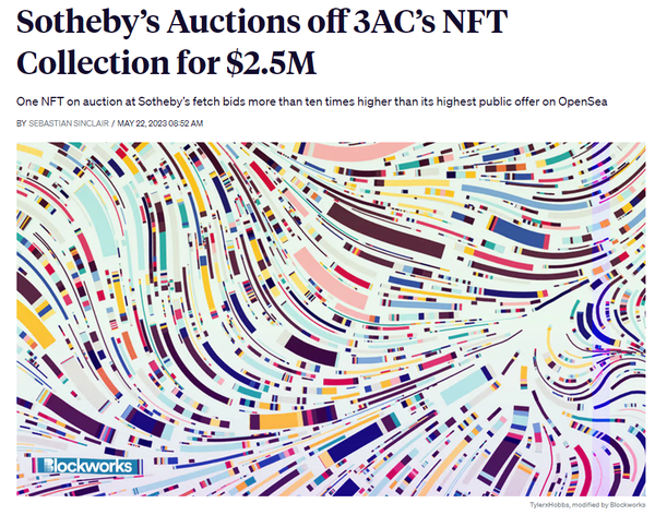 defunct crypto hedge fund, had some of its prized NFT assets auctioned off at Sotheby’s and surpassed expectations. $2.5m in sales have been completed so far, with the standout being Fidenza