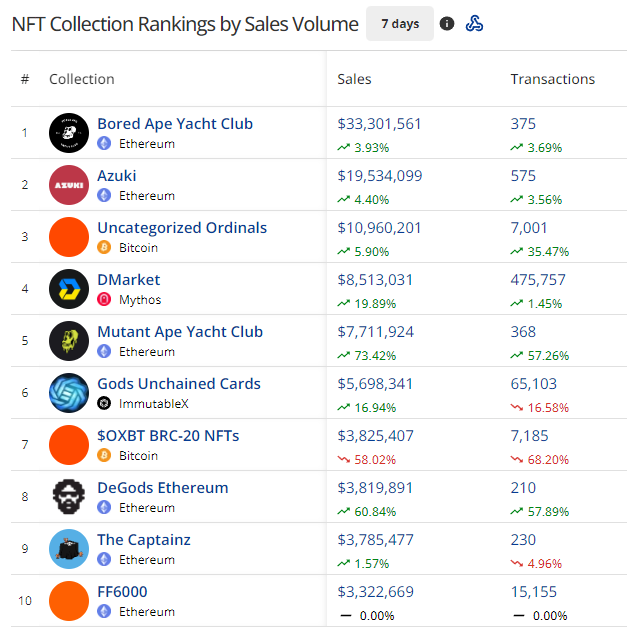 - DeGods has had a big week and landed at the 8 spot, possibly from speculation leading up to the De[id] reveal.