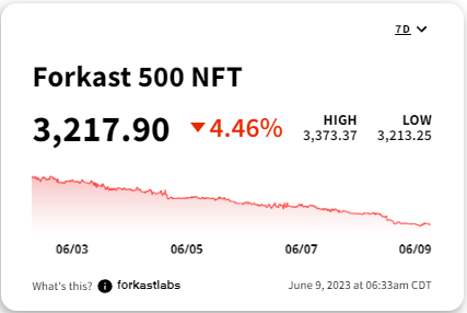 NFT Forkast NFTs are still riding their downtrend that started on 6/1 and has yet to react to the SEC’s lawsuits