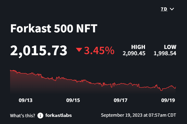 Is there anything left to say about the NFT market at this point? With no catalysts for change anywhere in sight, we’re seeing a continued bleeding out in the NFT market. Maybe the takeaway here is that the lower volume in NFTs hasn’t really led to desperation and selling NFTs