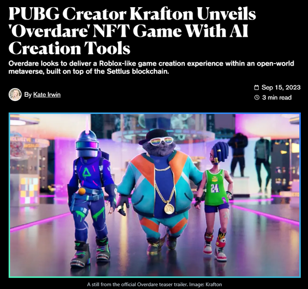Ziron, and Krafton, the devs behind PUBG, also announced a new game called Overdare. I hope both were taking notes on Zynga’s entrance into NFTs.