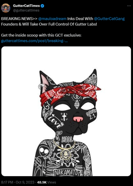 - Ownership of the Gutter Cats NFT collection was sold to Kingpin Noah, in a move that mirrors the Pudgy Penguins story.