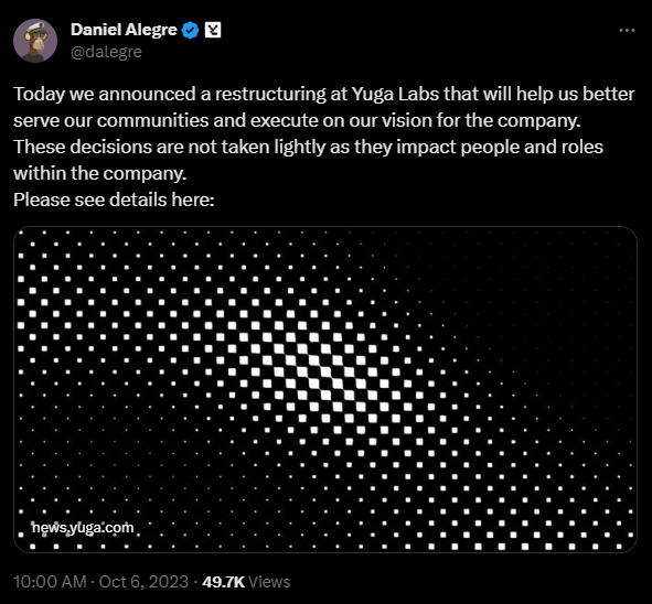 Along with their first major layoffs, Yuga Labs disclosed that they would be changing the core focus of their business. Instead of building auxiliary games in house, they’ll now turn entirely to third parties who bring more experience, and allow them to focus on their Otherside