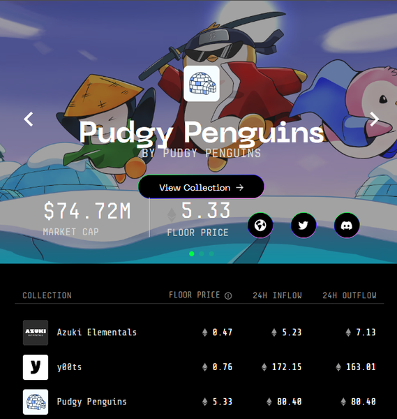 Initial reaction to the proposal was positive, leading to a drastic 85% increase in wash trading last week, and over $31.3m in wash sales volume. Wash transactions saw a similar increase from 28,208 in the first week of October, climbing 75% to 132,281 last week. Blur has more competition than just the new SoFi platforms to contend with now. A new disruptive marketplace called Flooring Protocol is making a serious run on farmers with their fractionalied NFTs. Just yesterday, Flooring Protocol saw over 489 ETH traded in and out of fractionalized Azuki Elementals, y00ts, and Pudgy Penguins NFTs. While these are fungible tokens being traded, and not NFTs, they offer traders a new way to get liquidity, and collectors a chance for exposure to some of the world’s
