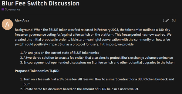 by positive sentiment around a proposal for a 1% marketplace fee that will ultimately burn $BLUR tokens.