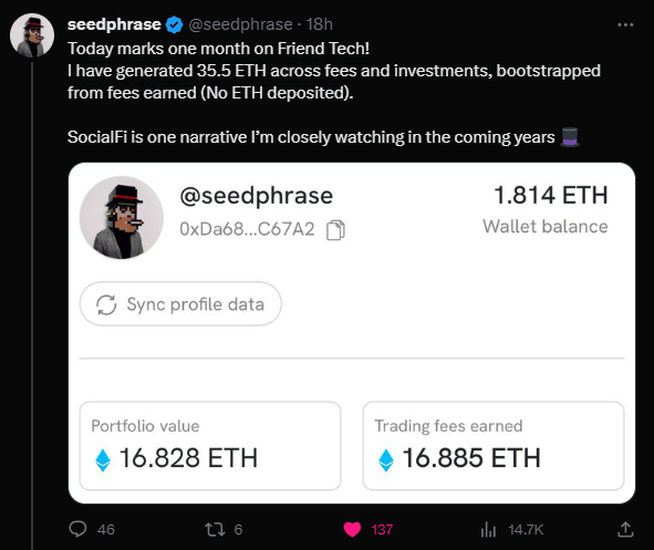 platform’s points increased, traders began looking elsewhere for rewards on the blockchain. FriendTech was primed to win over these traders when it launched on August 10, giving users shared fees each time traders bought and