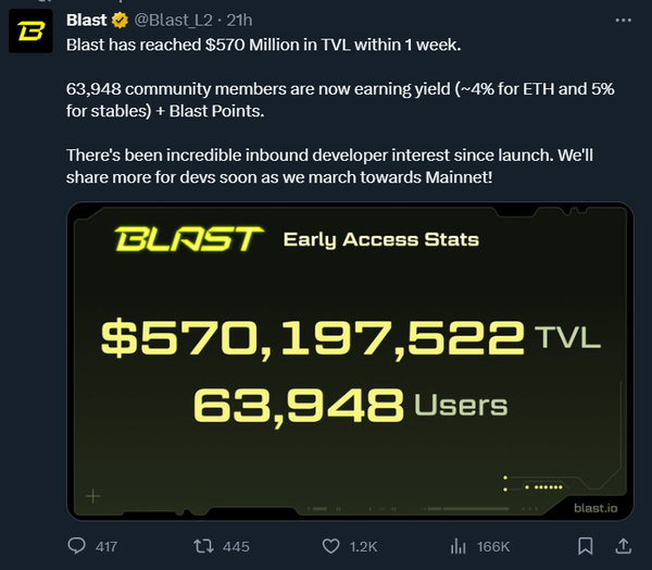 back folks, because something is cooking in the NFT markets. If you think the past few weeks were hot, just wait for the (potential) upcoming blastoff next year when over $570m in liquidity on the new Blast platform is unlocked.