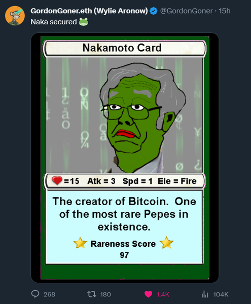 - Yuga Labs co-founder Gordon Goner has once again gone on an NFT grail shopping spree, this time adding Winds of Yawanawa, Zynga’s SugarTown Oras, SuperYeti, Jack Butcher’s Trademark, and a true grail, Rare Pepe #1 to his already impressive collection.