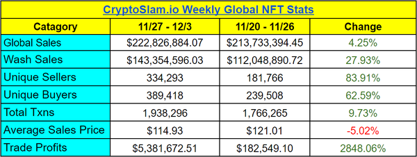 this is where we typically see the best performance in the NFT market. With Art Basel this week, we might expect a slowdown in trading, but then again, traders are still chomping at the bit for more NFT action. If you want to follow along with the action, make sure to follow CryptoSlam on X. Every day we drop a 5-minute video called Inside NFTs to help you keep current on the NFT market. Have a MEGA GM!