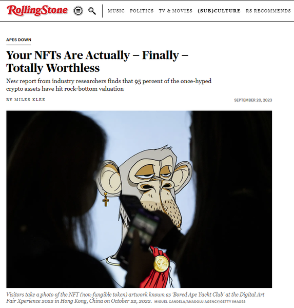 Just one month prior, the NFT market saw its third-highest number of NFT transactions ever (at the time), when transactions climbed to 11,541,885 in August. Sure, the number of buyers was only half the amount we saw the last time transactions were as high in early 2022, but again, leaving out color completely changes the picture. It also tells you a lot about what publications like Rolling Stone were rooting for. It wasn’t for the tech to fade away, it was for