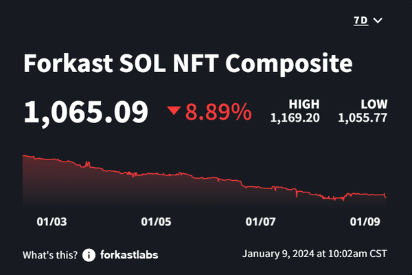 The Forkast Indexes reflect this shift in the market as well. In the past 7d, the Solana NFT Index is down -8.89%.