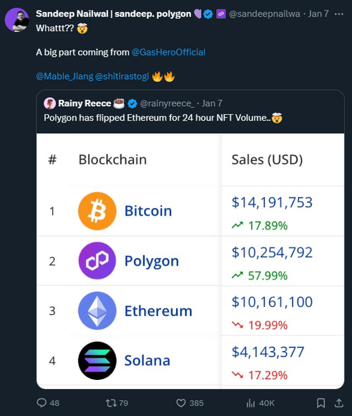 This past weekend for a brief period, Polygon NFTs also flipped Ethereum in the 24h charts.