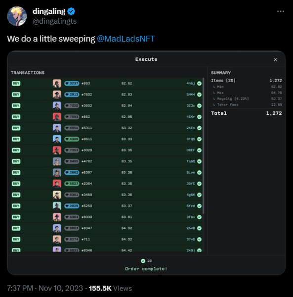 - Mad Lads and BoDoggos saw massive secondary action this past week when NFT whales swept through the collections. Average sales prices in the Mad Lads collection rose to $4,653 from $2,612 earlier this month, and BoDoggos climbed to $207.40, up from just $69.33.