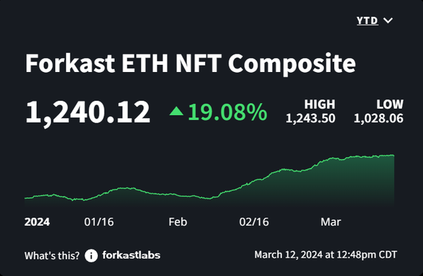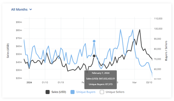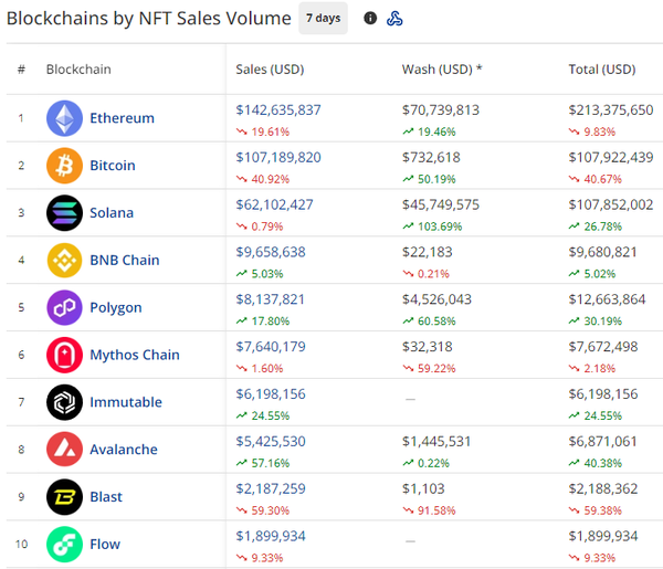 in NFTs and gamified trading platforms like Blur still are driving sales, which this week came in at $142M, down 19.61% from the prior week.