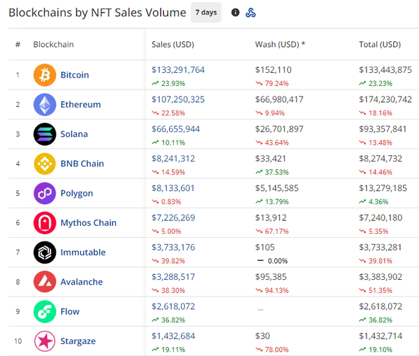 - Bitcoin is the king of NFTs again, and if we add in Runestones sales (currently