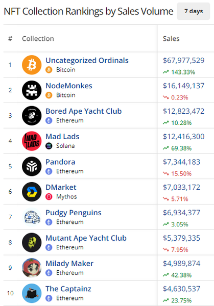 - Milady Maker is ripping this week, with sales up 42.38% to $4.98M. The project that promises nothing is enough for most collectors, so their new token launch on Solana is