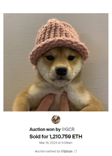 - A massive sale this week bridged the meme coin phenomenon with NFTs when the original photo that inspired the $WIF dogwifhat token sold as a 1/1 NFT for $4.3M.