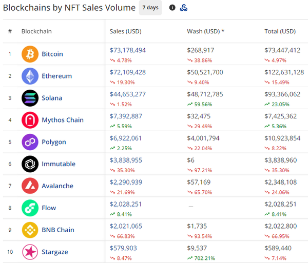 - Mythos Chain leapfrogged Polygon this week thanks to strong sales in the DMarket marketplace. DMarket’s $7.1M represents over 97% of Mythos Chain’s total weekly sales.