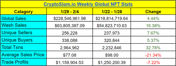 Global NFT sales broke a 2-week skid, with sales up 4.44% last week to $228.54m. Solana NFT sales on the other hand fell 20% from the previous week, while the value of the Solana market has fallen -3.43%.
