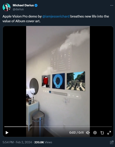 ownership means. Already with the Apple Vision Pro, we’re seeing early tech adopters hanging albums on their wall that can be played through Apple Music right in your room. Those albums one day will probably be NFTs, but even if not, people are now getting conditioned to decorate their walls with persistent