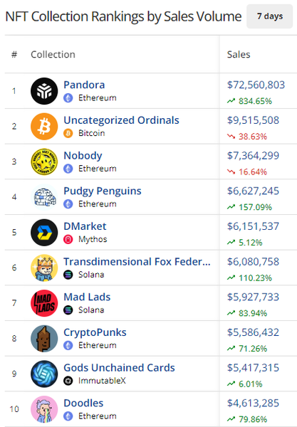For the past week, one project has stood head and shoulders above the rest, with the Pandora NFT collection not just grabbing the mindshare of the NFT space, but a cool $73m in sales at the same time.