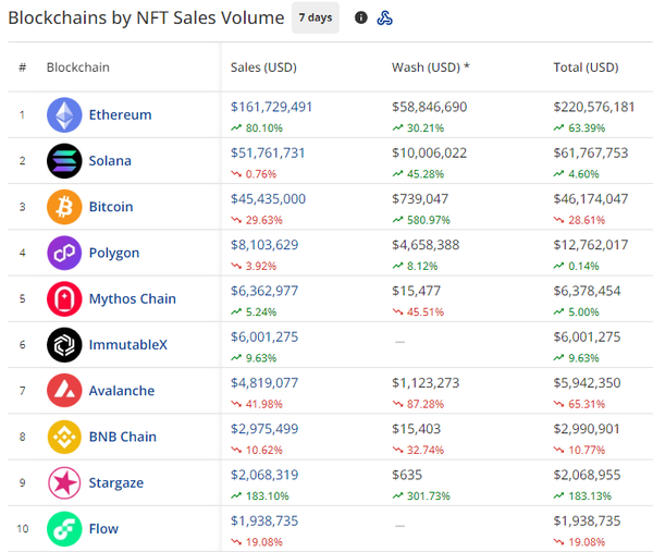 - Ethereum is your top blockchain by NFT sales volume, showing that traders' move away from ETH NFTs a few
