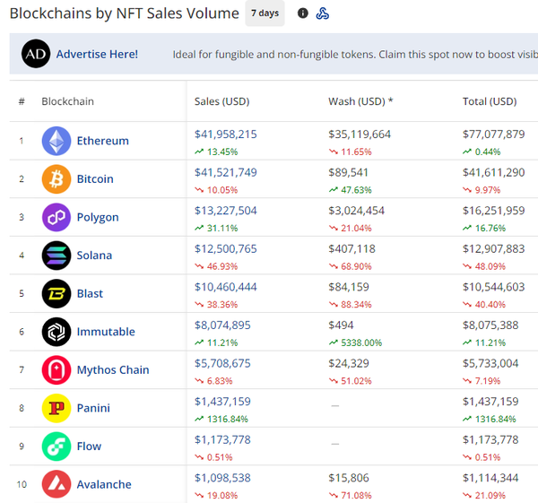 - Ethereum is your top blockchain by sales volume this week as sales climbed 13.45%