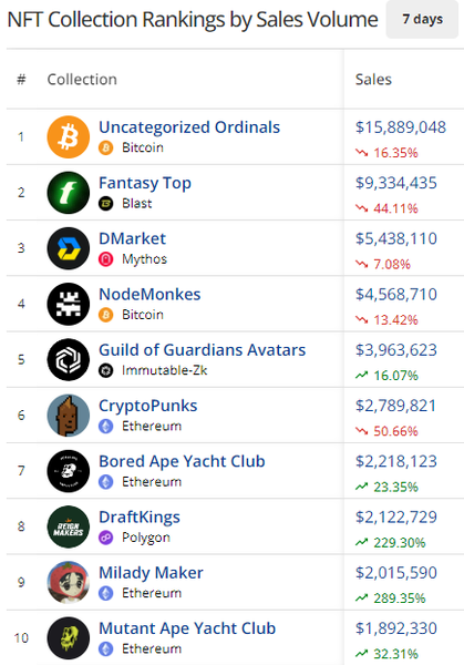Like the previous week, the volatility in crypto is not having much of an impact on NFTs, and we yet again found both a 2024 low for NFT sales and also 28-week low.