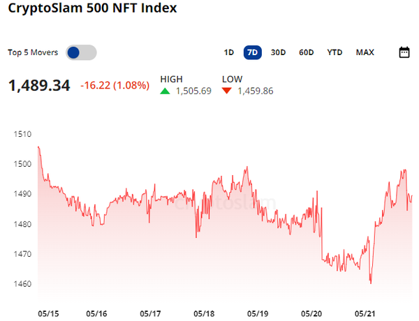 A recovery has arrived in the NFT market, even though the market has lost -1.08% of its value in the past week. The CryptoSlam 500 NFT Index is reflecting yesterday’s