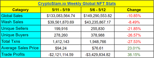 We also saw a substantial decline in sellers, buyers, and transactions, while sellers for the second week in a row saw an increase in profits (though still in the negative).