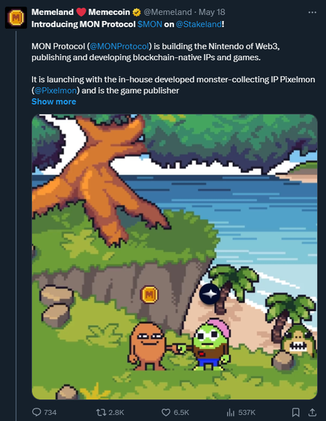 - The Captainz (Memeland) and Pixelmon announced a partnership this week that allows $MEME token holders to stake their $MEME token to earn Pixelmon’s $MON token.