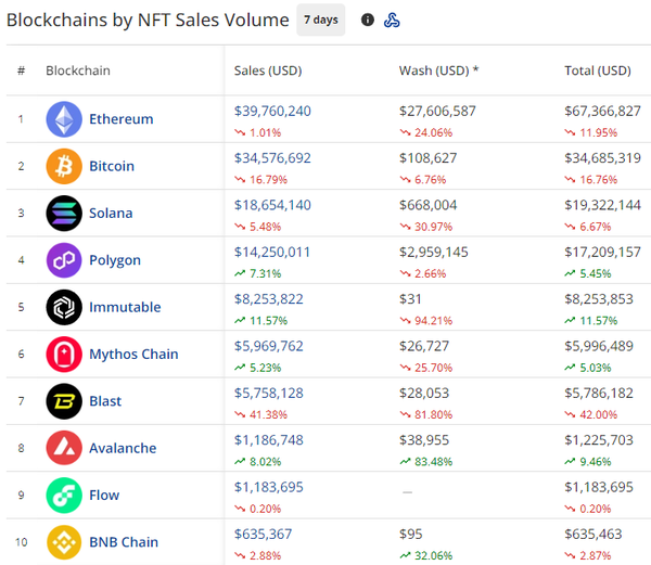 - Bitcoin saw the 2nd biggest loss of sales volume out of the top ten blockchains last week with sales falling 16.79%. There are plenty of reasons why, ranging