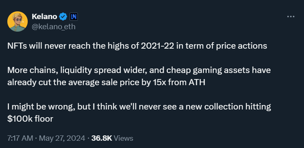 While crypto is getting ready to cook, NFT sales fell to another 2024 low, and now a 29-week low. We also saw a decline across the board in sellers, buyers, transactions, sales prices, and profits.