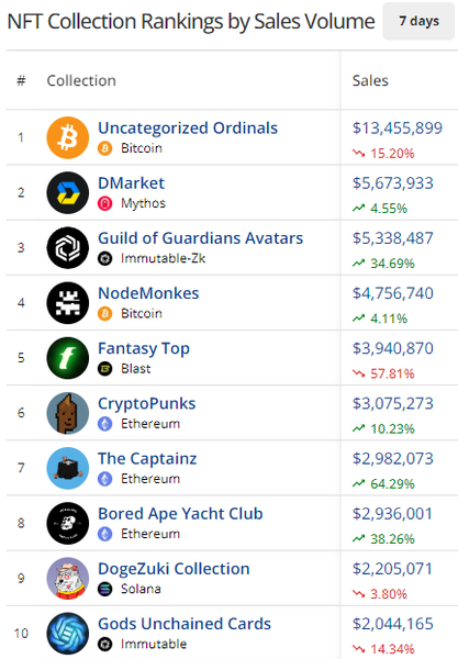 - Guild of Guardians Avatars on Immutable-zk, like DMarket, shows the power of gaming NFTs as its $5.33M in sales beat every PFP collection across all
