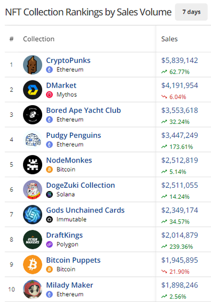 sales, while dominating the individual NFT sales rankings too.