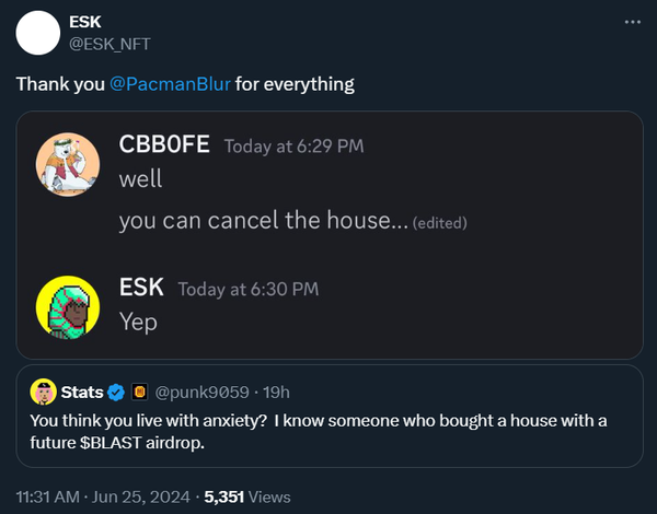 Let’s dive into what’s happening in NFTs this week and see why regardless of the market itself, Blast(ing off) is definitely in our future.