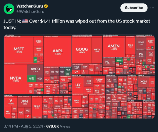 while $1.4 trillion was wiped from the US stock market.
