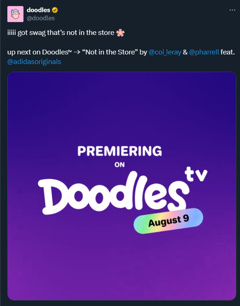 - DoodlesTv Season 1 passes mint has been completed with over 20k ed of the content passes sold. Now they’ve dropped “Not in the Store” NFT packs to collectors which gives holders access to watch Coi Leray’s new music video.